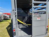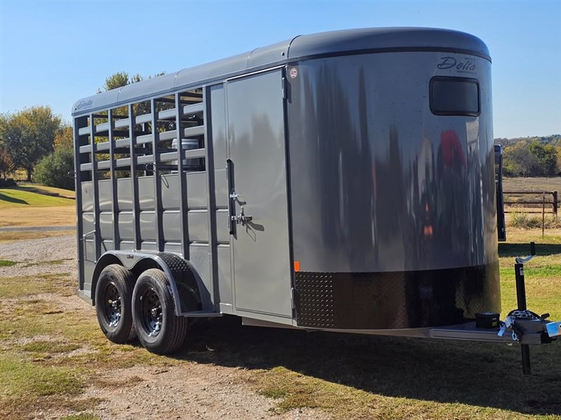 THIS IS A 16X6 2026 DELTA HORSE TRAILER. THIS TRAILER COMES INCLUDED WITH A FULL SWING, HALF-SLIDE REAR GATE AS WELL AS A SIDE ACCESS FOOR. THIS TRAILER ALSO HAS TACK ROOM-WITH REMOVABLE SADDLE RACKS 10 TACK HOOKS AND A SAFTEY LOCK (KEYS INCLUDED). THE FLOORING ON THIS TRAILER IS MADE UP OF PRESSURE TREATED PINE WOOD, AND IT HAS TWO DIVIDERS. FOR 3 HORSES ALSO THE TACK WALL IS HENGED FOR MOORE OP.TO HAUL MORE LIVESYOCK [7' TALL]